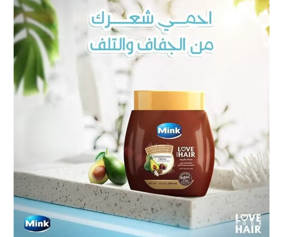 حمام كريم منك بأنواع الأفوكادو والثوم والزيتون لترطيب وتغذية الشعر، تقليل الهيشان والتقصف، ومنح نعومة ولمعان صحي للشعر الجاف والمتعب.
